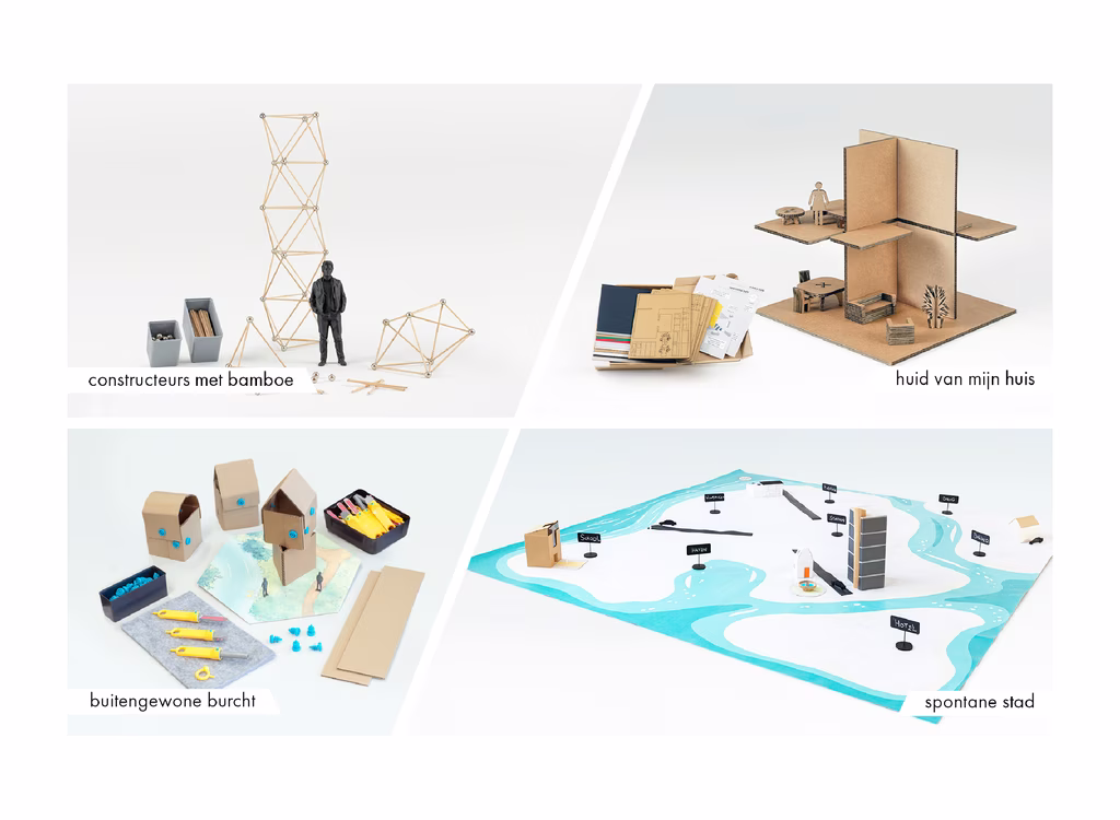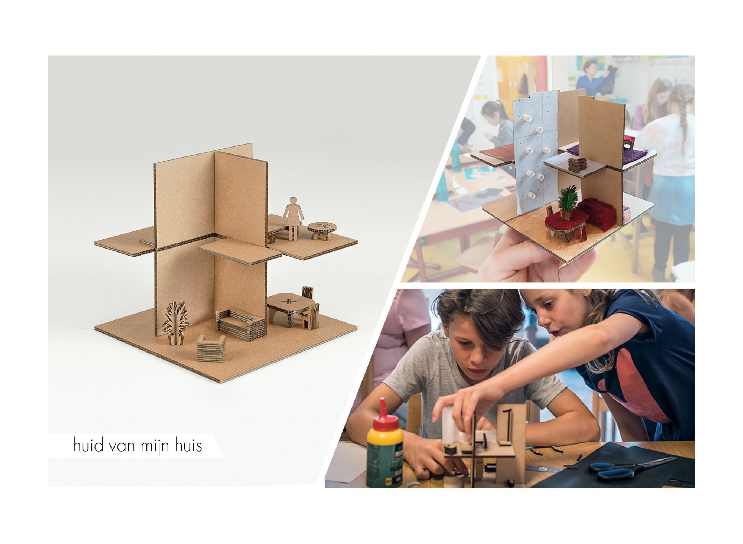 Huid van mijn huis laat kinderen nadenken over het interieur, het exterieur en de relatie daartussen. Met behulp van een bouwpakket zetten ze de muren, vloeren en meubels in elkaar. Vervolgens start het ontwerpgesprek. In groepsverband richten ze hun huis in en bepalen ze de kleuren en materialen van het interieur. De gevels en het dakterras maken het ontwerp af.