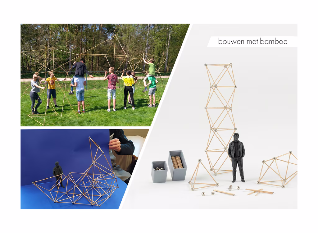 Bouwen met bamboe daagt leerlingen uit om constructieve kunstwerken van buitengewone grootte te ontwerpen en te bouwen. Onder leiding van een architect worden ze uitgedaagd om de stevigheid van verschillende vormen te onderzoeken met behulp van een magnetische constructieset. Ze worden geprikkeld om ontwerpend te denken en hun ruimtelijk inzicht wordt op de proef gesteld. Uiteindelijk combineren ze ruimtelijke figuren tot een groot kunstwerk enzullen ze goed moeten samenwerken bij het bouwen van hun ontwerp met bamboo en elastiek.